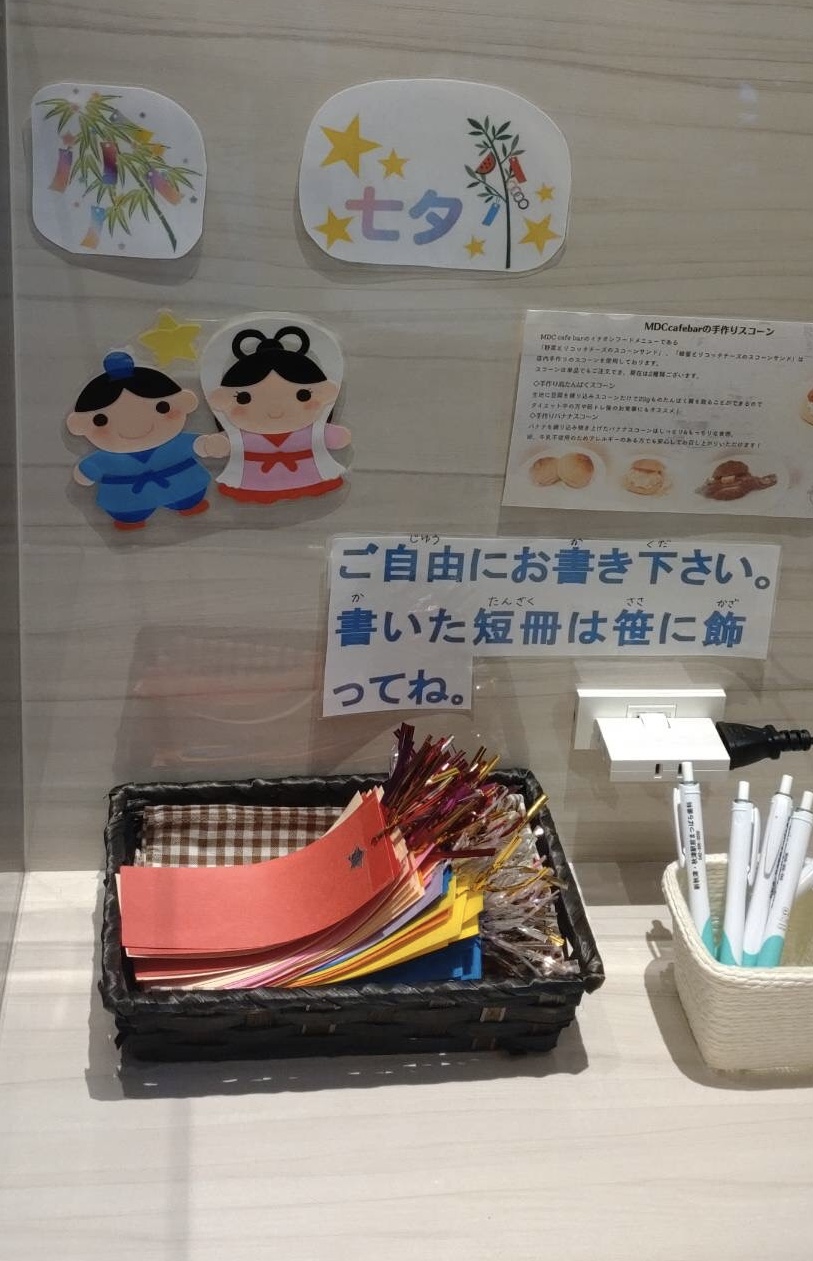 七夕飾りは、かなり迫力のある大きさですので、この機会にぜひ、お願い事を書いてみてくださいね。